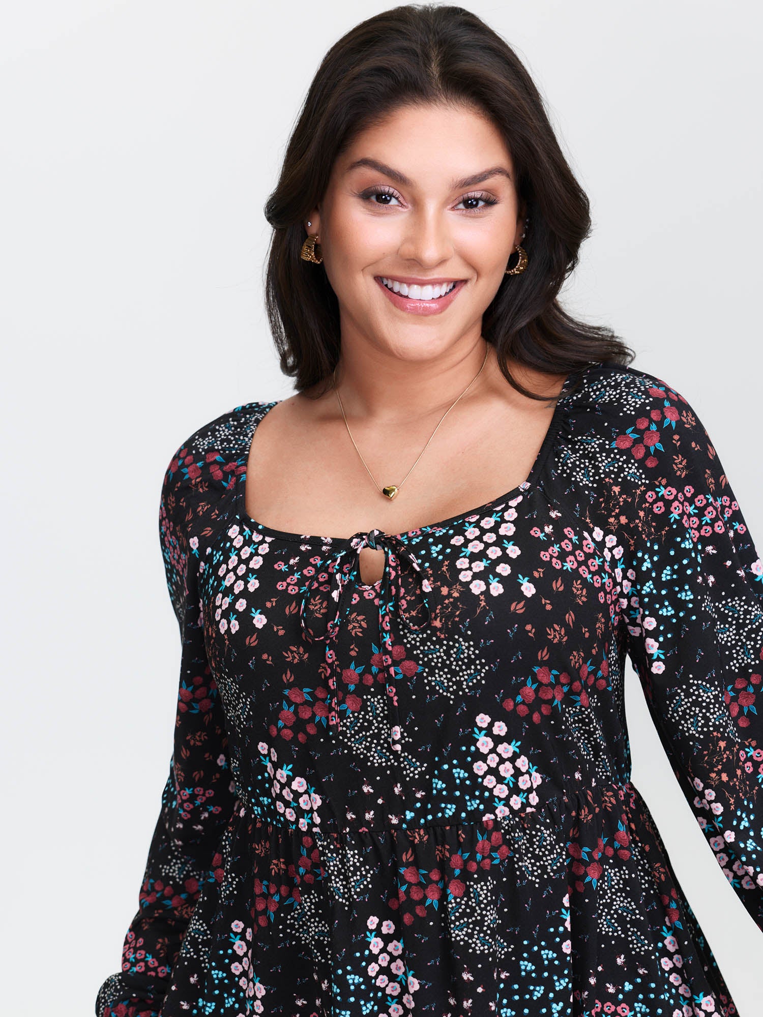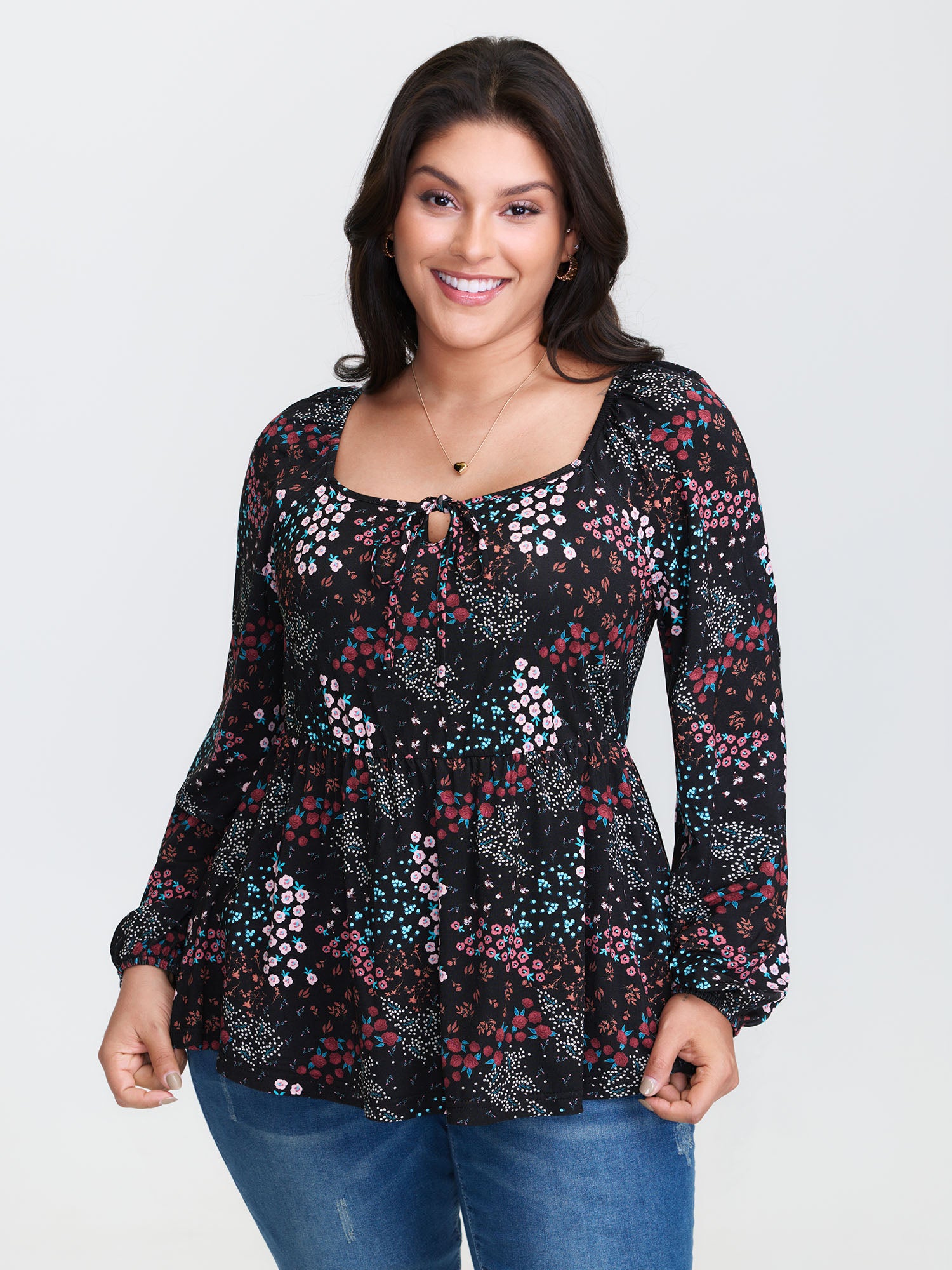 Multi-Color Floral Print Sleeve-Tie Knit Top