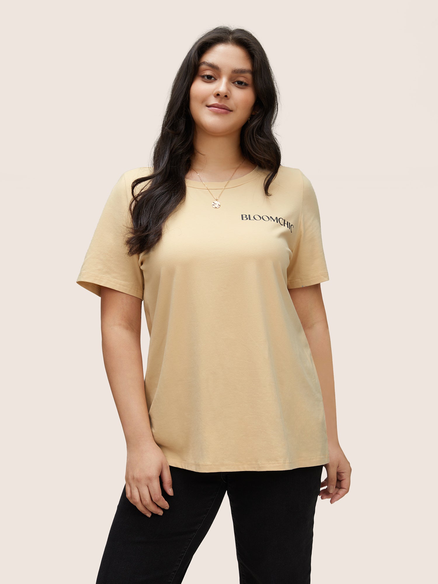 BLOOMCHIC Basic Solid Crew Neck T-shirt