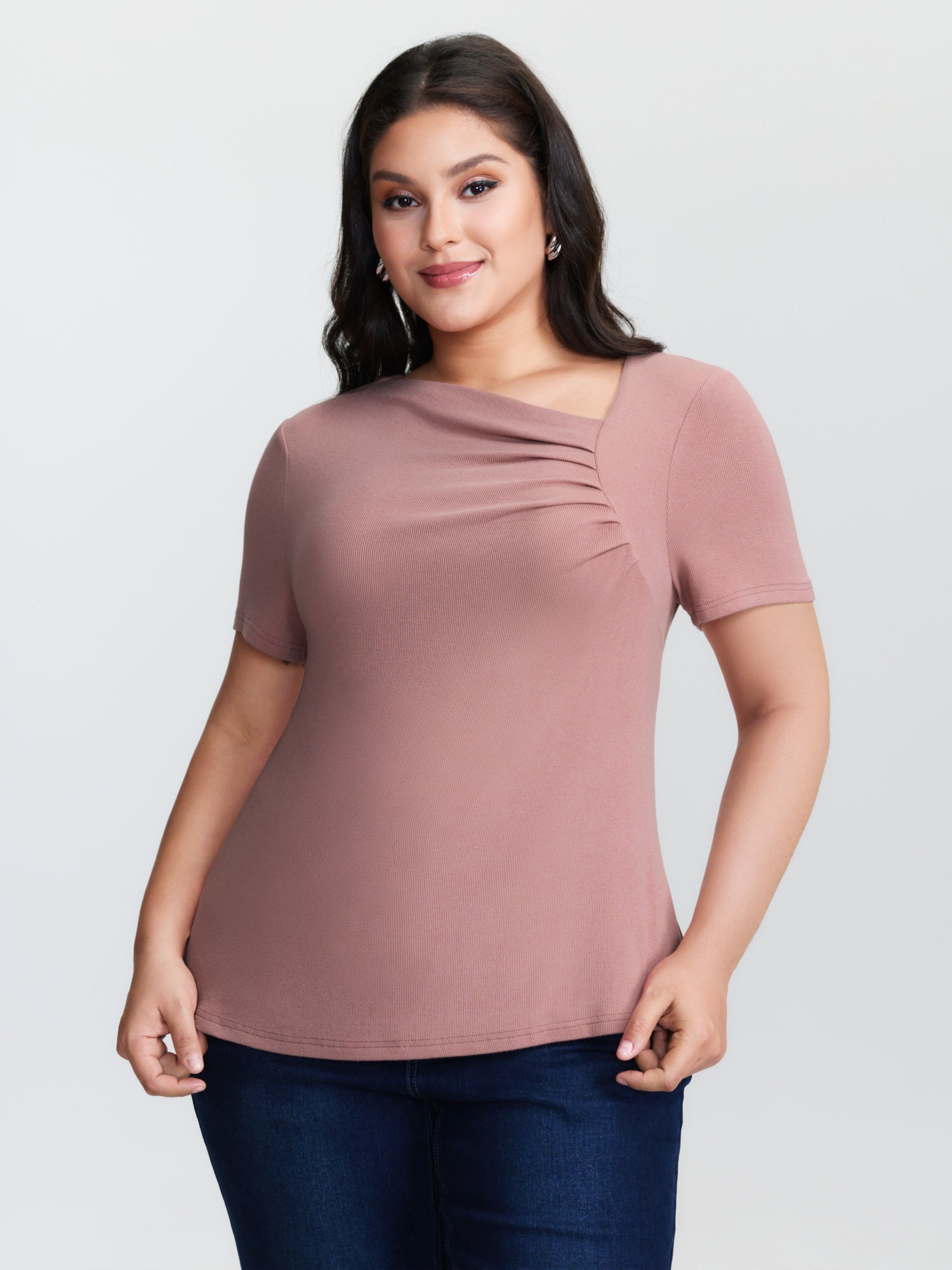 Stretchy Gathered Side Neckline Knit Top