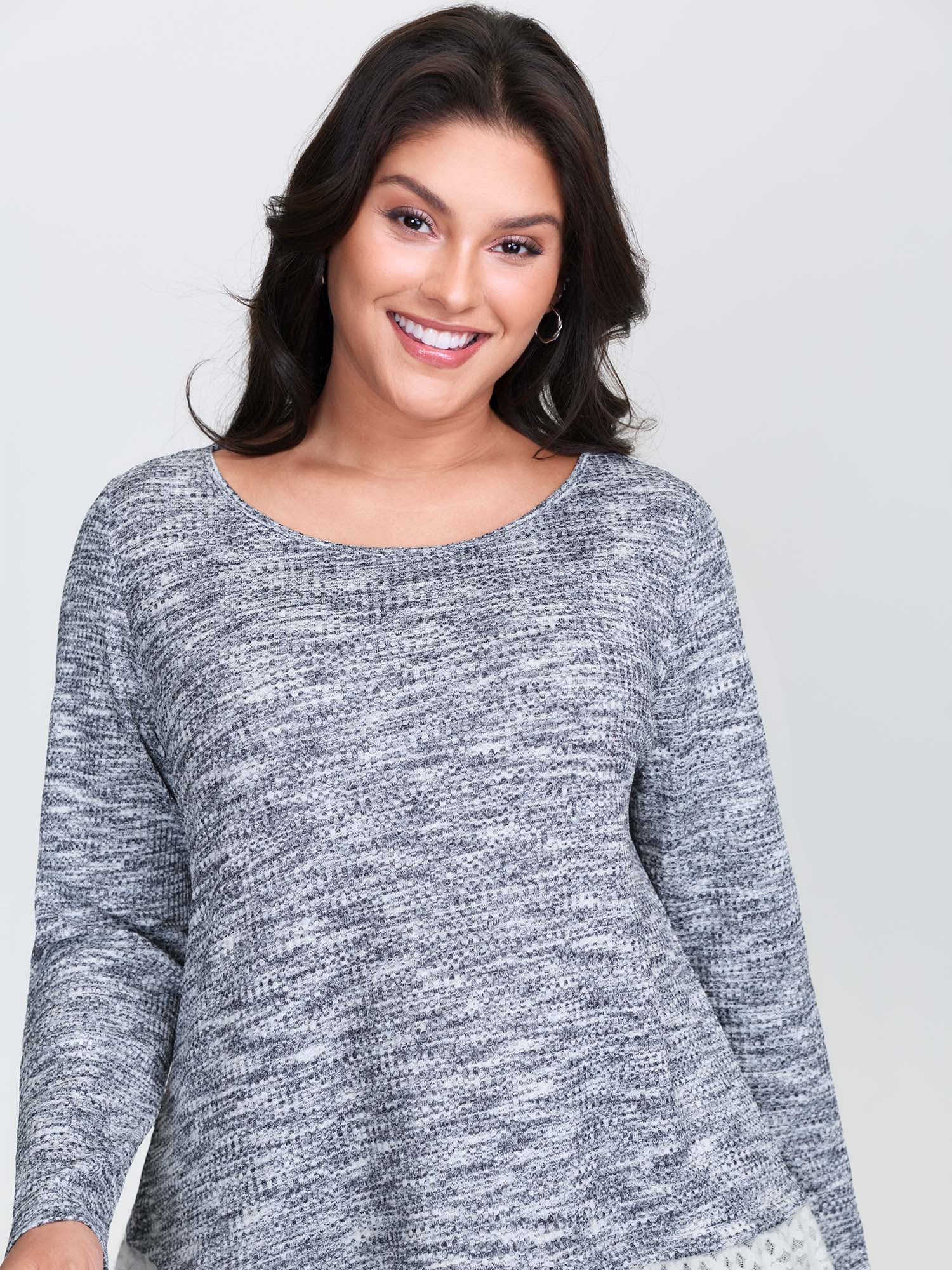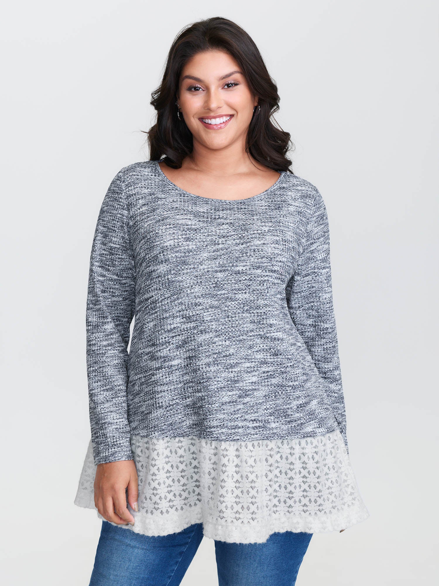 Plain Layered Lace Hem Knit Top