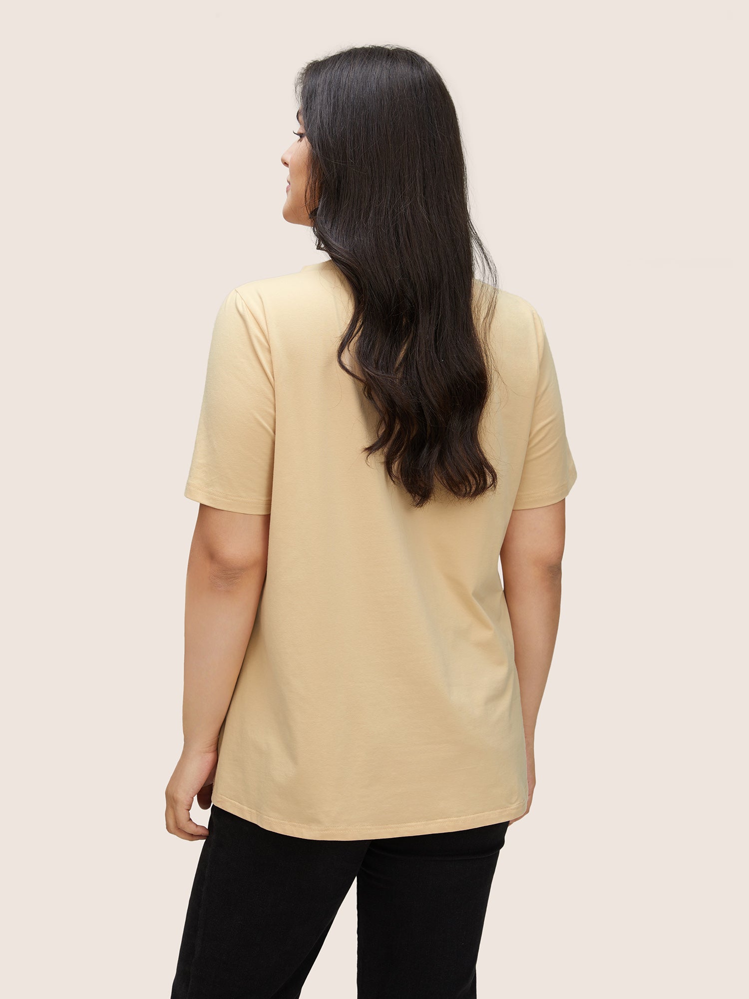 Stretchy Split Button Neckline Basic T-Shirt