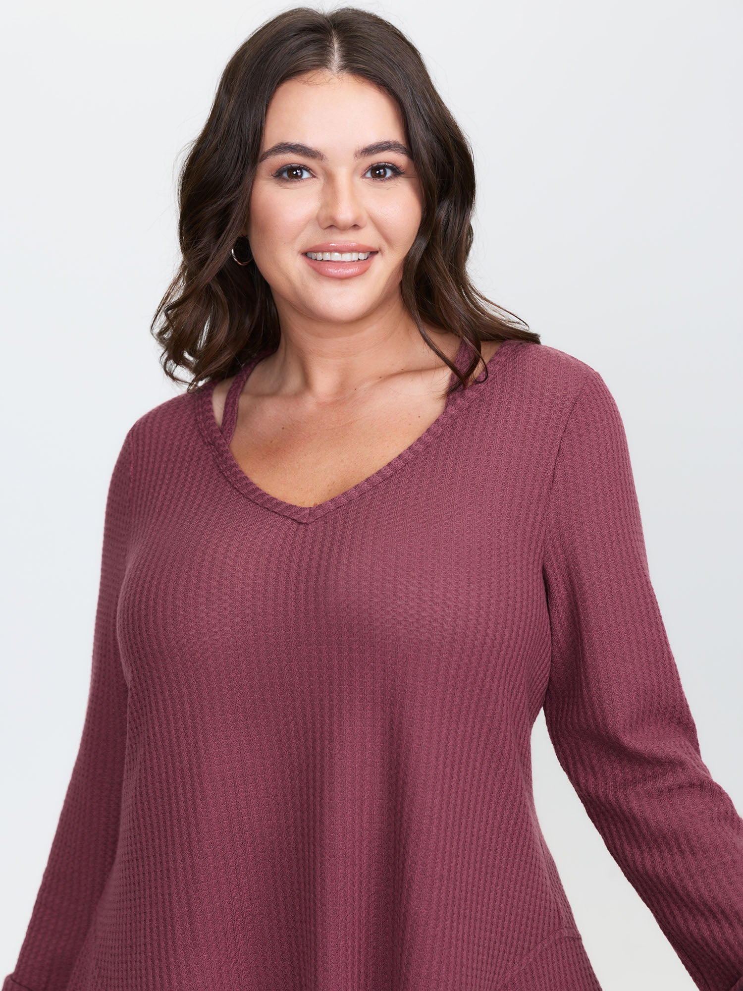 Waffle Backless Tie Curvy Hem Top