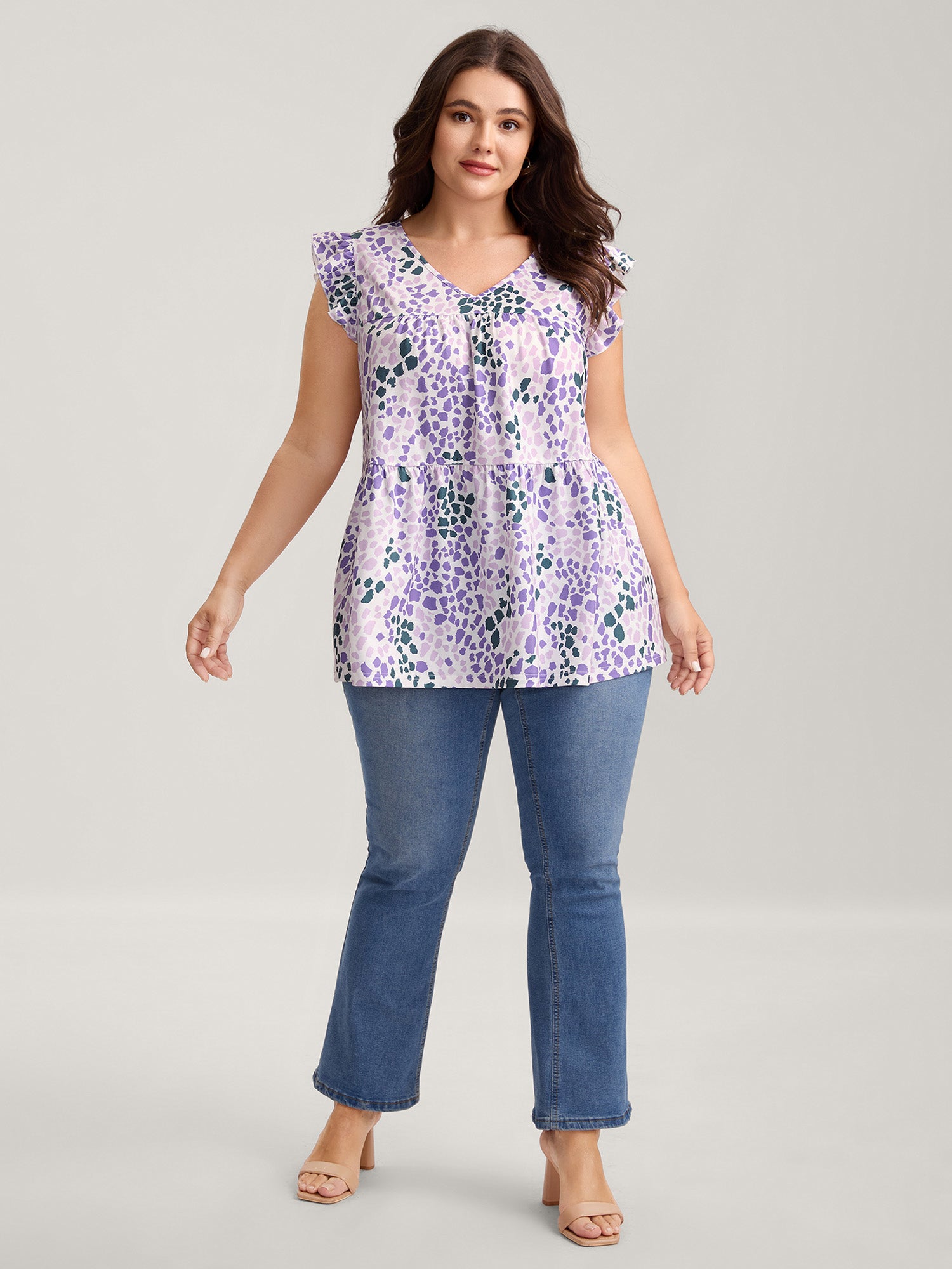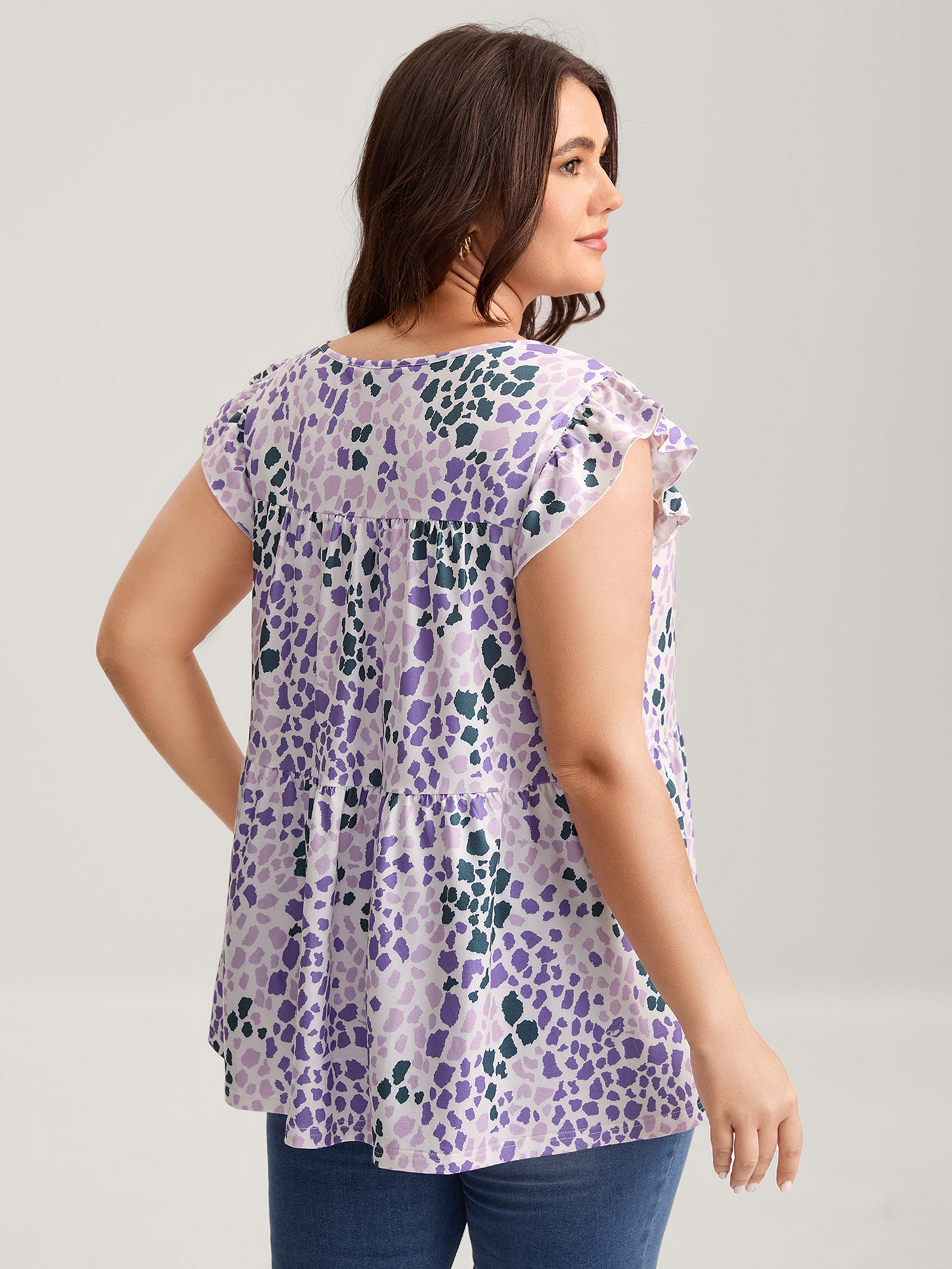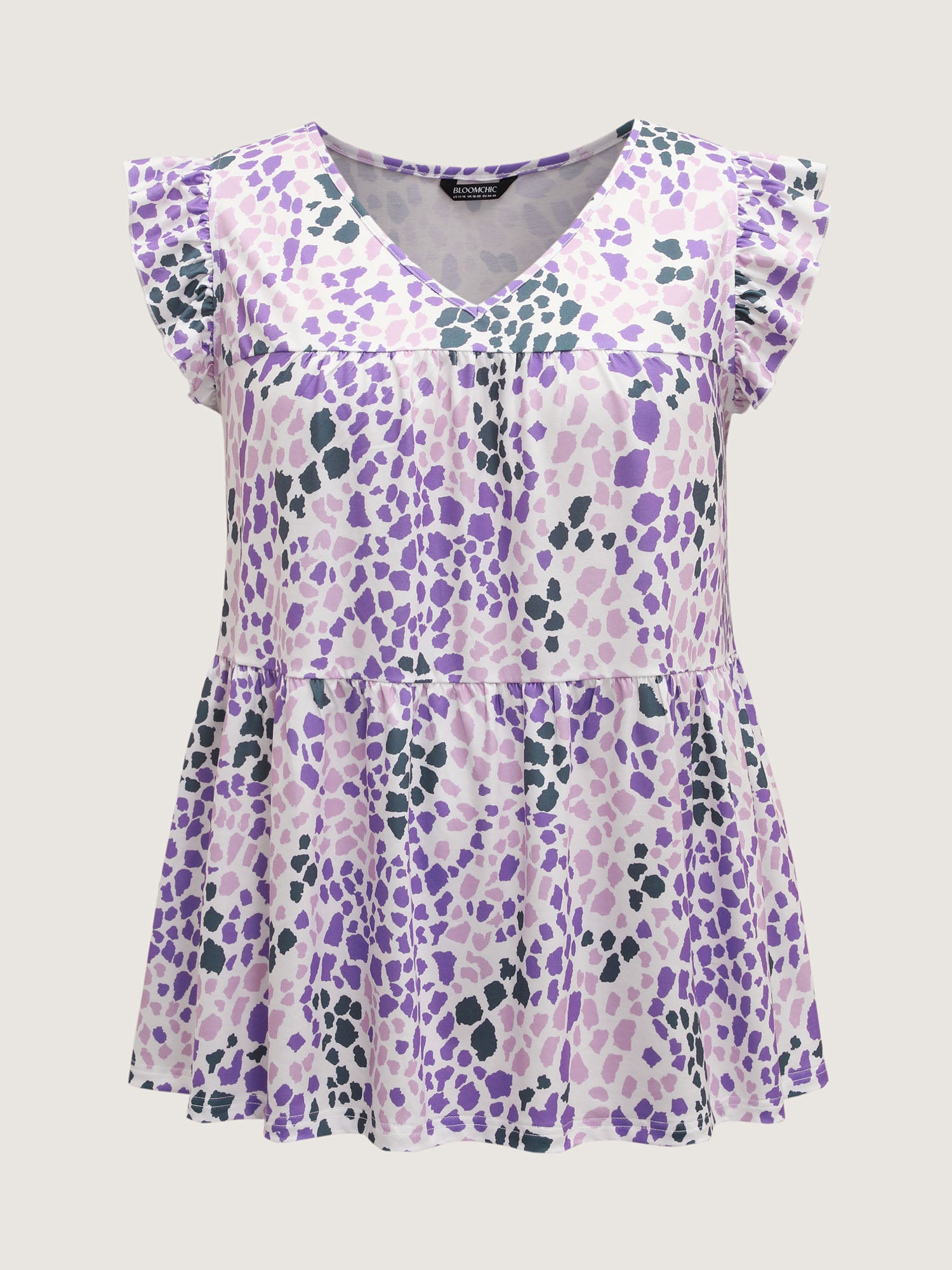 Shop Colorful Leopard Print Bust-Comfort Top now and redefine your style with confidence at BloomChic. Tailored for mid and plus-size women. This trendy Tops Women, sizes 10-30. Color:Multicolor;Prints:Animal print;Neckline:V-neck;Sleeve Type:Ruffle Sleeve;Details:Ruffles, Gathered;Pocket:No-pocket